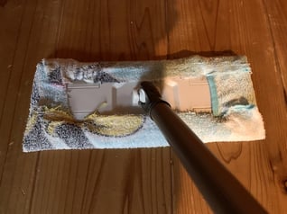 あと、床掃除のクリーンワイパーの使い捨てシートの代わりに大きくカットしたウエスを取り付け床を磨きます。これはウエスというより雑巾として、すぐに捨てずに何度か洗って使ってます。