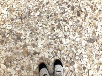 最も印象的だった展示は、床一面に5トンものホタテ貝の貝殻を敷き詰めた作品です。その上を歩くと「バリバリ」と音を立てて貝殻がつぶれていきます。展覧会終了後は踏みつぶされた貝殻をセメントの原料として再利用する予定とのことです。