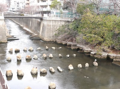 カモ類が越冬のために飛来する目黒川