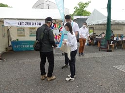 テント前でアンケートに答える