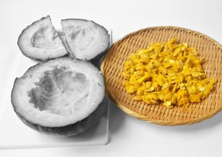 - 蒸しかぼちゃのワタと種は3~4日程天日干しをし、よく乾燥させます。