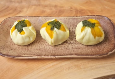 蒸しかぼちゃとチーズの茶巾絞り