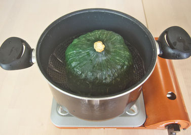 かぼちゃを丸ごと1個 深鍋で蒸します