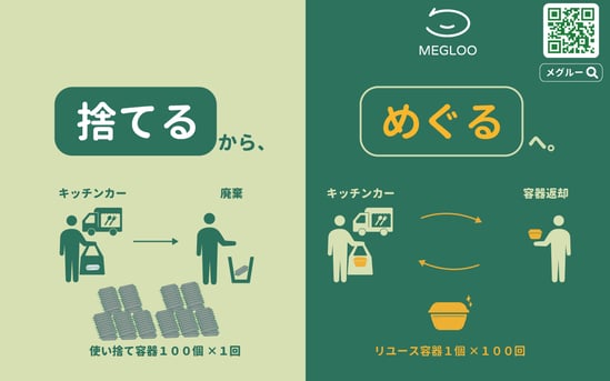 テイクアウト用のリユース食器をシェアしてごみの削減をすすめる仕組み「Megloo(メグルー)」の実証実験が中目黒で始まったと知り、それを手がける株式会社カマンの善積さんにお話を伺いました。